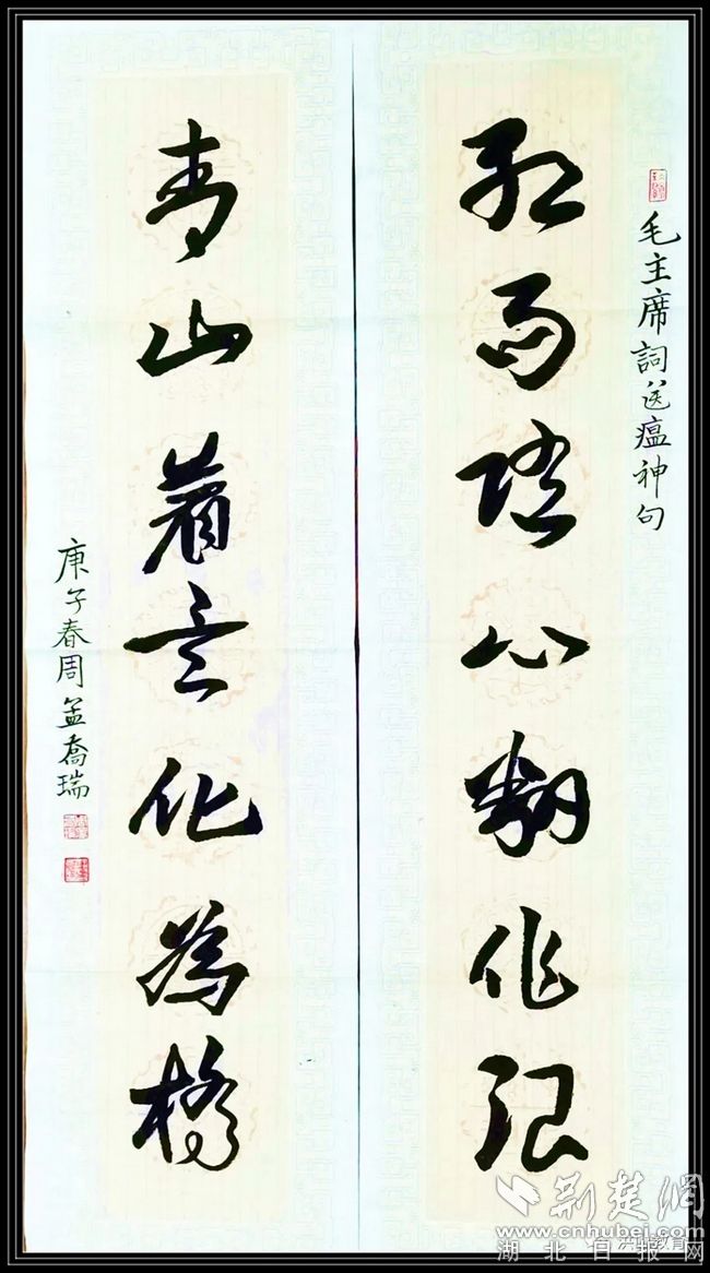 周孟乔瑞草书对联《送瘟神》选句。通讯员供图