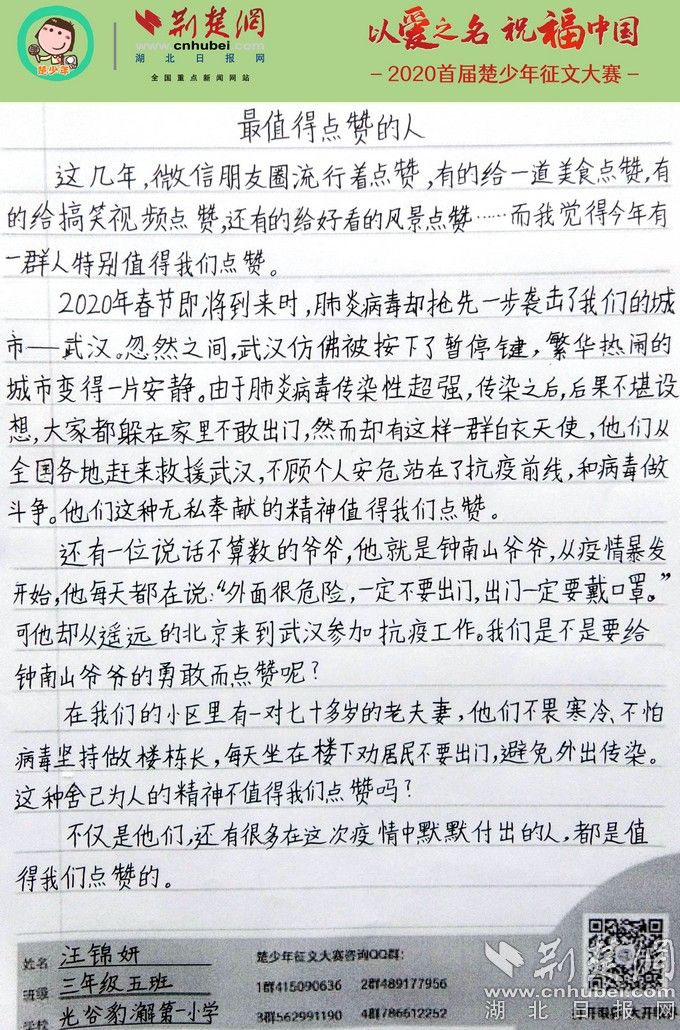 点击查看:以爱之名祝福中国 2020首届楚少年征文大赛正式启动