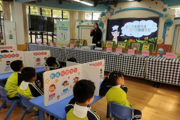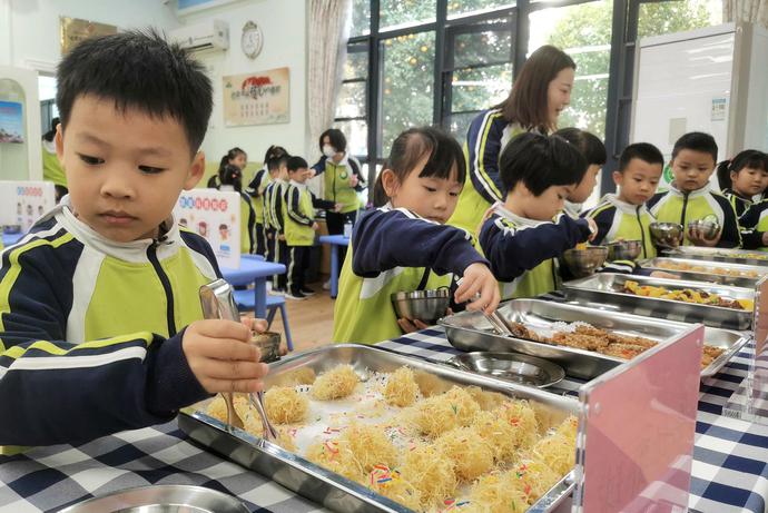 这个学期常青童馨幼儿园将膳食营养搭配、文明用餐礼仪等纳入日常教育教学,教孩子们学习简单合理的配餐方法,养成不挑食、不偏食的习惯,懂得取餐、用餐的常识,为进入小学的学习和生活打基础。