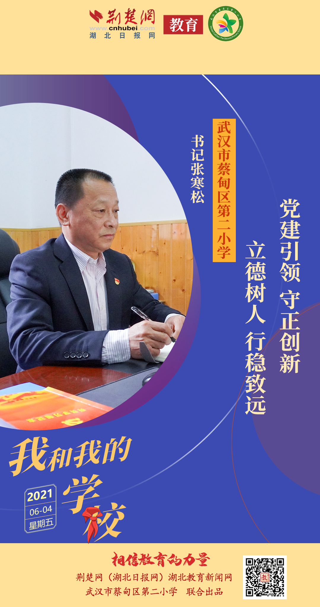 武汉市蔡甸区第二小学书记张寒松:党建引领,守正创新,立德树人,俯身耕耘,凝心聚力谋发展,行稳致远谱新篇!