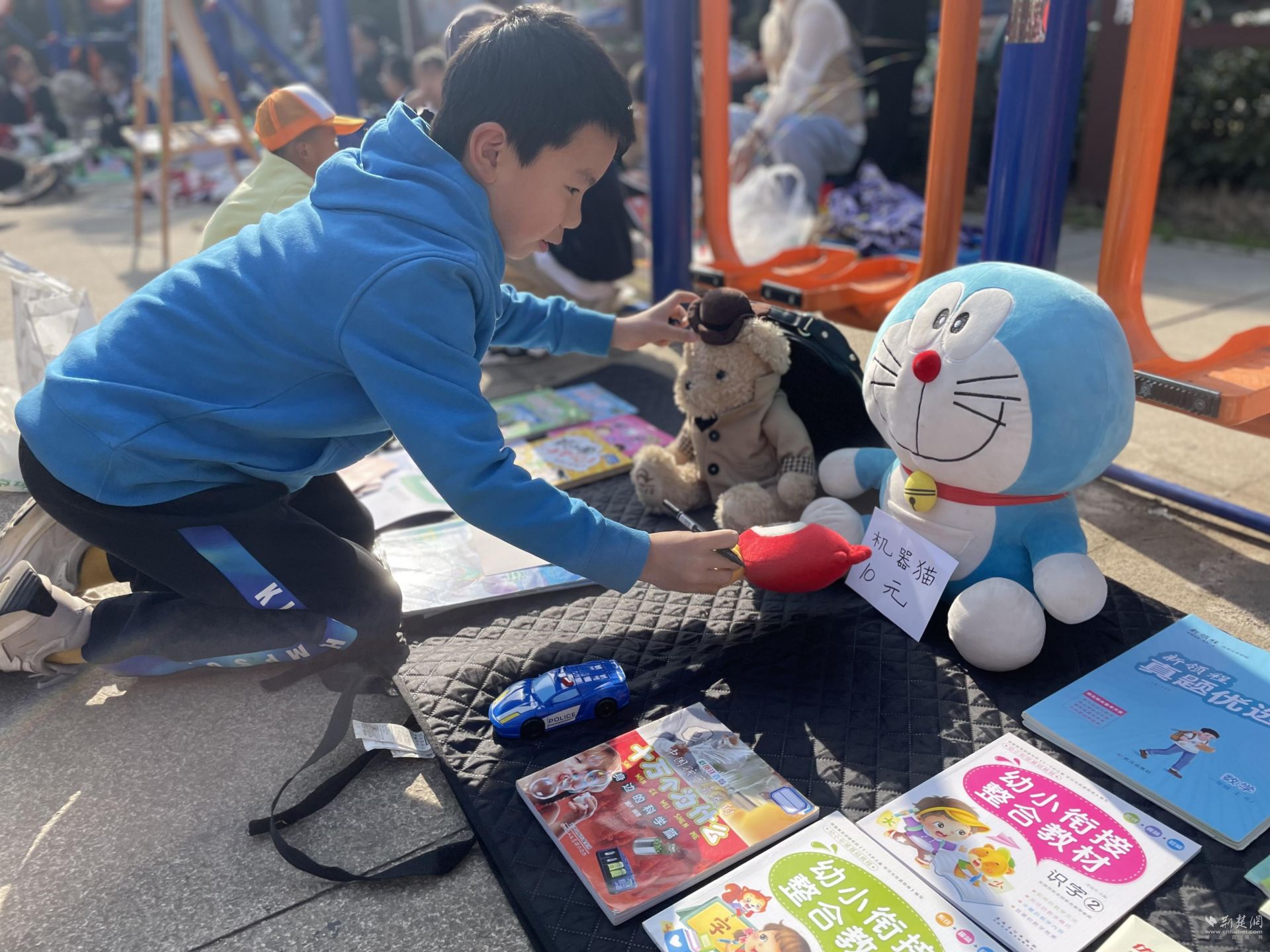 “义卖啦,义卖啦!”在宁康园广场上,四(8)中队的队员们摆起了义卖“摊位”热情的吆喝着。好看的书籍、精美有趣的玩具、充满童趣的画作、有创意的手工艺品、自制的水果茶……队员们将自己准备的物品一一进行摆放,来往的路人也纷纷驻足为孩子们点赞。