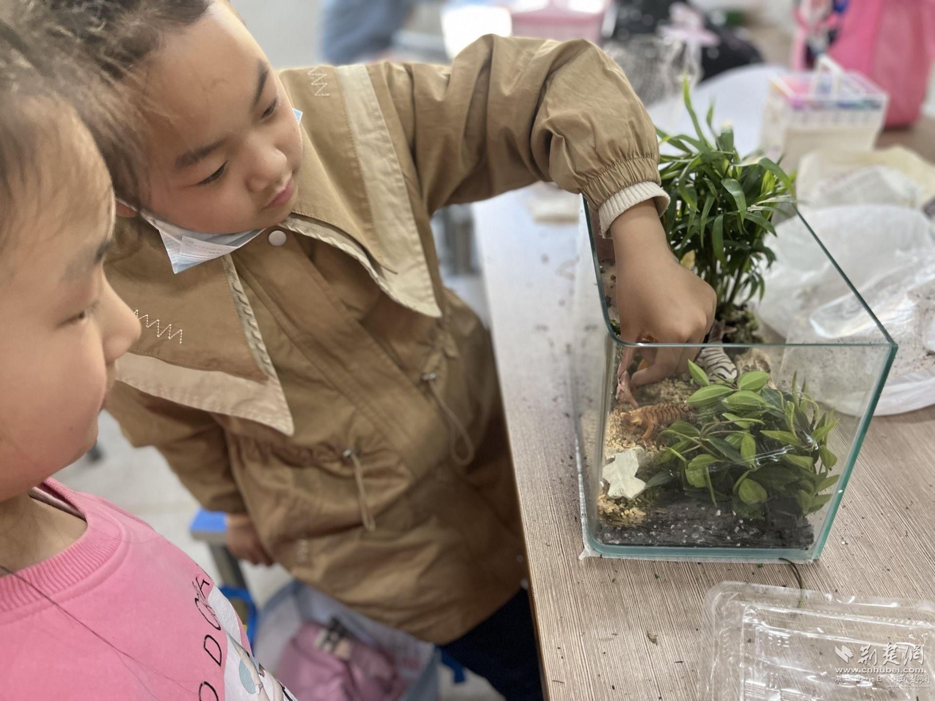 荆楚网(湖北日报网)讯(记者林杉 通讯员余少芹 周珺黛 实习生谢添羽)“绿色是生命的颜色,是我们最需要的颜色。”在春意盎然的四月,中法武汉生态示范城第三小学举办《为教室加点绿,把森林带回家》跨学科生态课堂活动,把森林带进教室,为校园增添点点绿意。