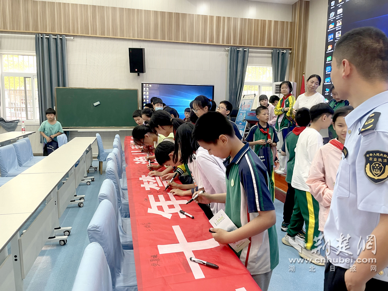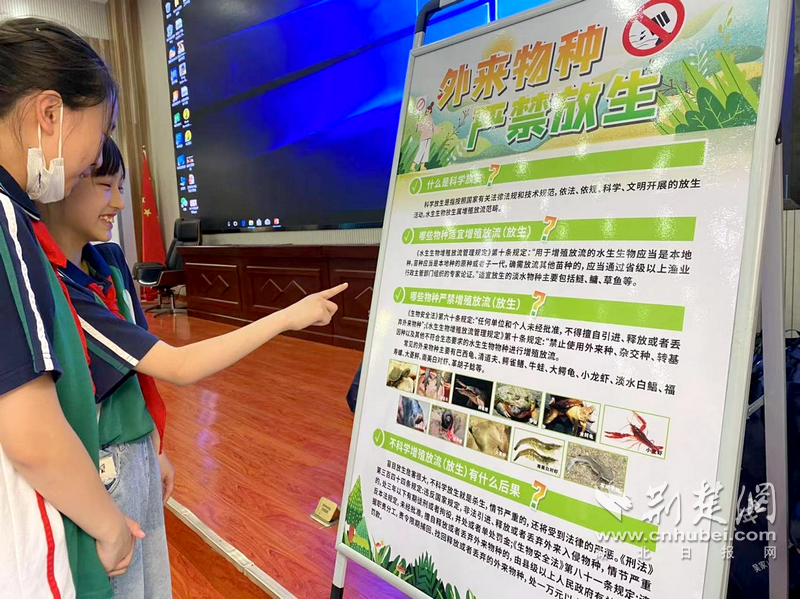 荆楚网(湖北日报网)讯(记者齐一璇、许文秀 通讯员万晟、张晶萍)每年4月份是长江“十年禁渔”专题宣传月。武汉市东西湖区嘉禾园小学联合文家湾社区开展专题科普宣传活动,让学生从点滴做起,爱护环境,爱护水生生物,共同守护长江。