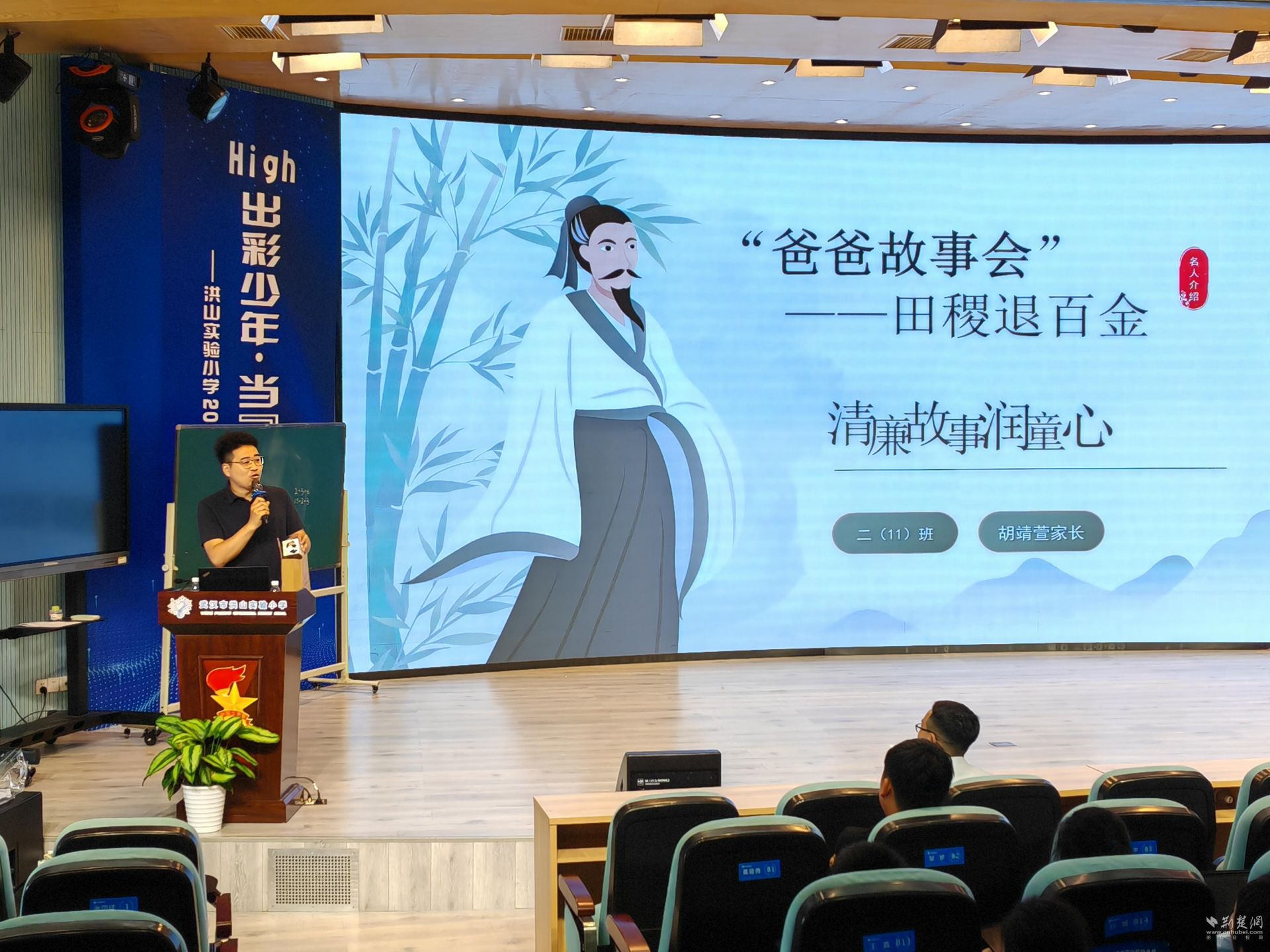 荆楚网(湖北日报网)讯(记者许文秀)廉政文化,在中国有着悠久的历史,是中国传统道德修养的重要组成部分。为推进清廉学校建设,近日,武汉市洪山实验小学结合校园第五届读书节推出的“爸爸故事会”栏目,招募爸爸们进校分享清廉故事,传播清廉文化,弘扬中华文化经典,营造风清气正的育人校园环境。