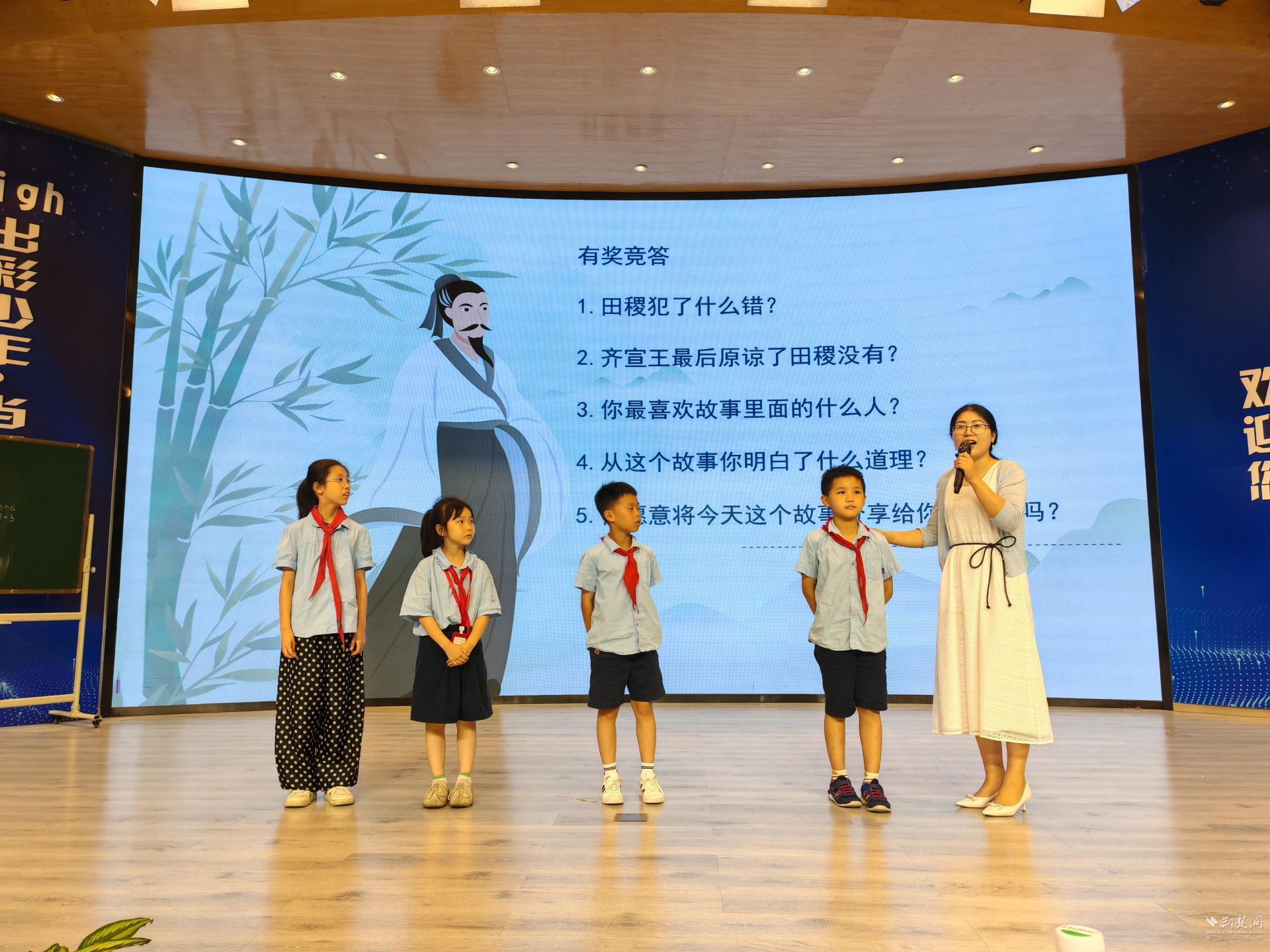 211班胡靖萱的舅舅用“田稷退贿”的故事告诉孩子们做人要像莲花出淤泥而不染。他幽默风趣的讲述赢得了孩子们的阵阵掌声。