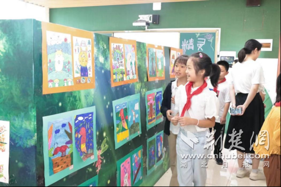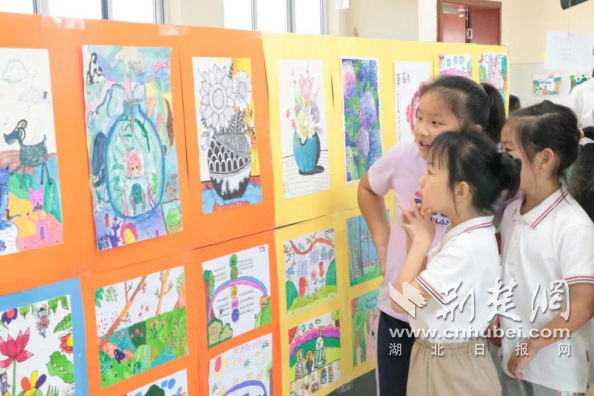 荆楚网(湖北日报网)讯(记者林杉 通讯员聂玲玲)6月,武汉经济技术开发区湖畔小学积极创新期末素养测评形式,在绿色校园创建背景下开展了“畅享自然美育”美术展,学生分别从自然主题、动物主题、花卉主题等构思创作,呈现出美轮美奂的艺术展览。