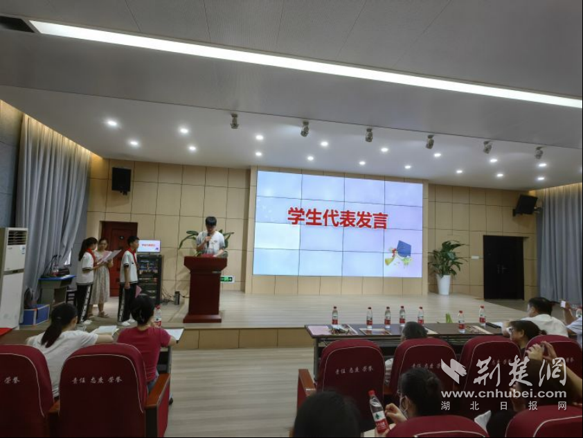踏歌逐梦行将远,策马扬鞭亦青春。六年级学生代表带来歌舞表演《把未来点亮》,用歌声唱响离别的心声,唱出未来的期待。“时光的河入海流,终于我们分头走,没有哪个港口,是永远的停留。脑海之中,有一个凤凰花开的路口,有我最珍惜的朋友。”九年级毕业生带来《凤凰花开的路口》,用歌声述说离别之情。