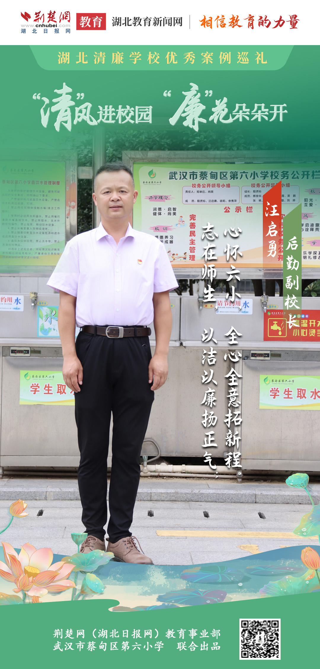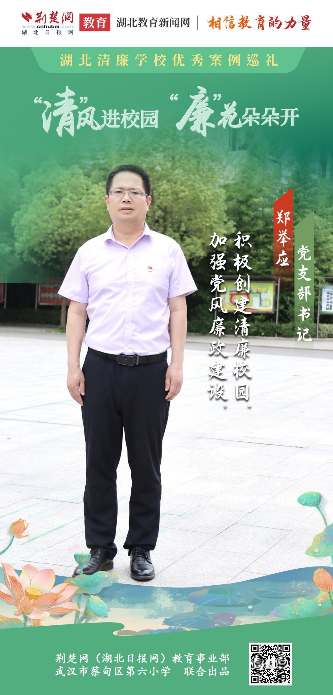 荆楚网(湖北日报)讯(记者林杉 许文秀 通讯员胡莉 实习生郭思怡)武汉市蔡甸区第六小学坚持党建引领,让“清正为官,廉洁从教”的价值取向渗透教育者心中。今年5月,学校党支部召开主题党日活动,组织成员观看反腐警示片《守住第一次》,旨在教导全体教师要恪守初心,要珍惜事业前程。同时,为了提高教师职业道德素养,学校要求教师签订《廉洁从教公开承诺书》,严格履行承诺,牢记教育使命。