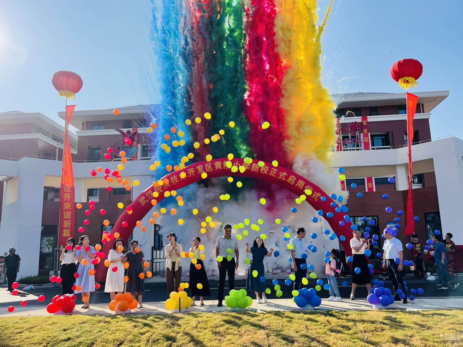 上午8点左右,黄陵小学校长罗千胜宣布新校区正式启用,三角湖小学教联体各校区校长、黄陵小学教师代表、学生代表及家长代表共同放飞彩色气球,彩烟飞舞,寓意新校多彩明天。
