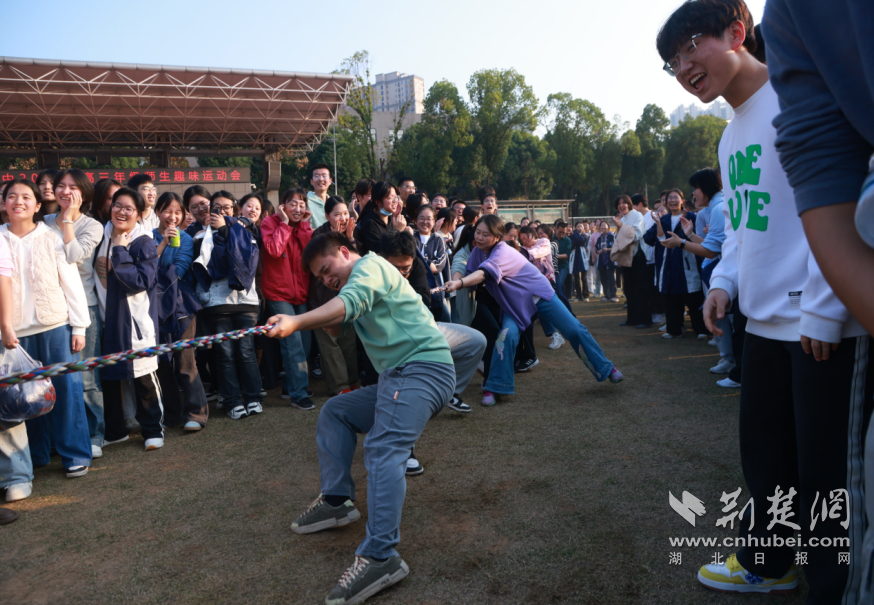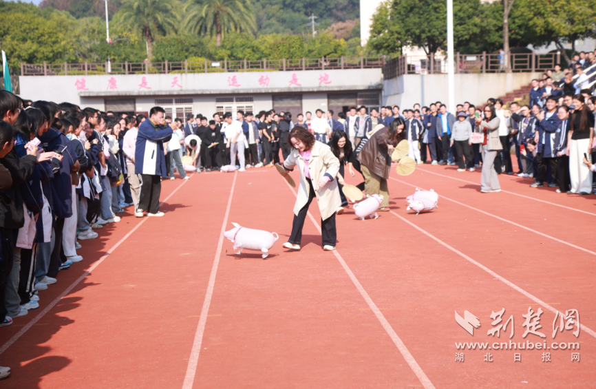 荆楚网(湖北日报网)讯(记者林杉 通讯员陈克茂 沈喻涛)11月14日,武汉市江夏区第一中学开展“减压赋能 聚力前行”师生趣味运动会。高三师生在四个特色项目中展开互动,用运动释放备考压力,以默契凝聚团队力量。