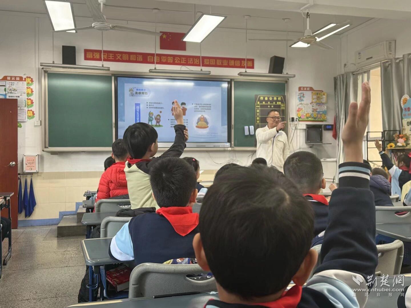 荆楚网(湖北日报网)讯(记者林杉)11月24日下午,华中科技大学同济医学院附属协和医院感染科赵雷教授走进水果湖第二小学二年级(7)班教室,为学生们开展了一场流感预防科普讲座。作为专业医生兼学生家长,赵雷结合临床实例,通过通俗语言讲解流感诱发因素、传播途径与典型症状,并对比普通感冒,阐明流感的特殊性及科学防护方法。