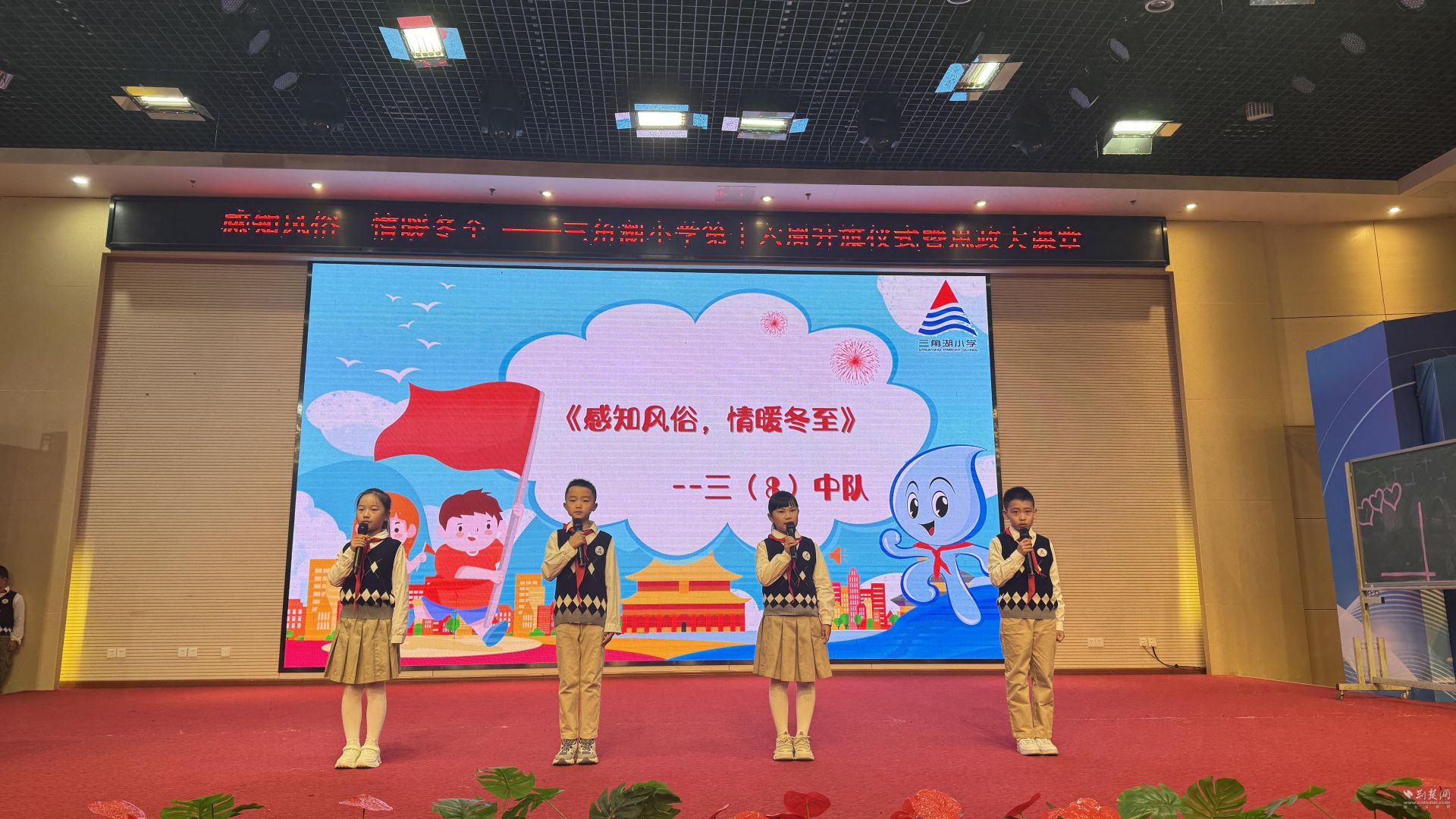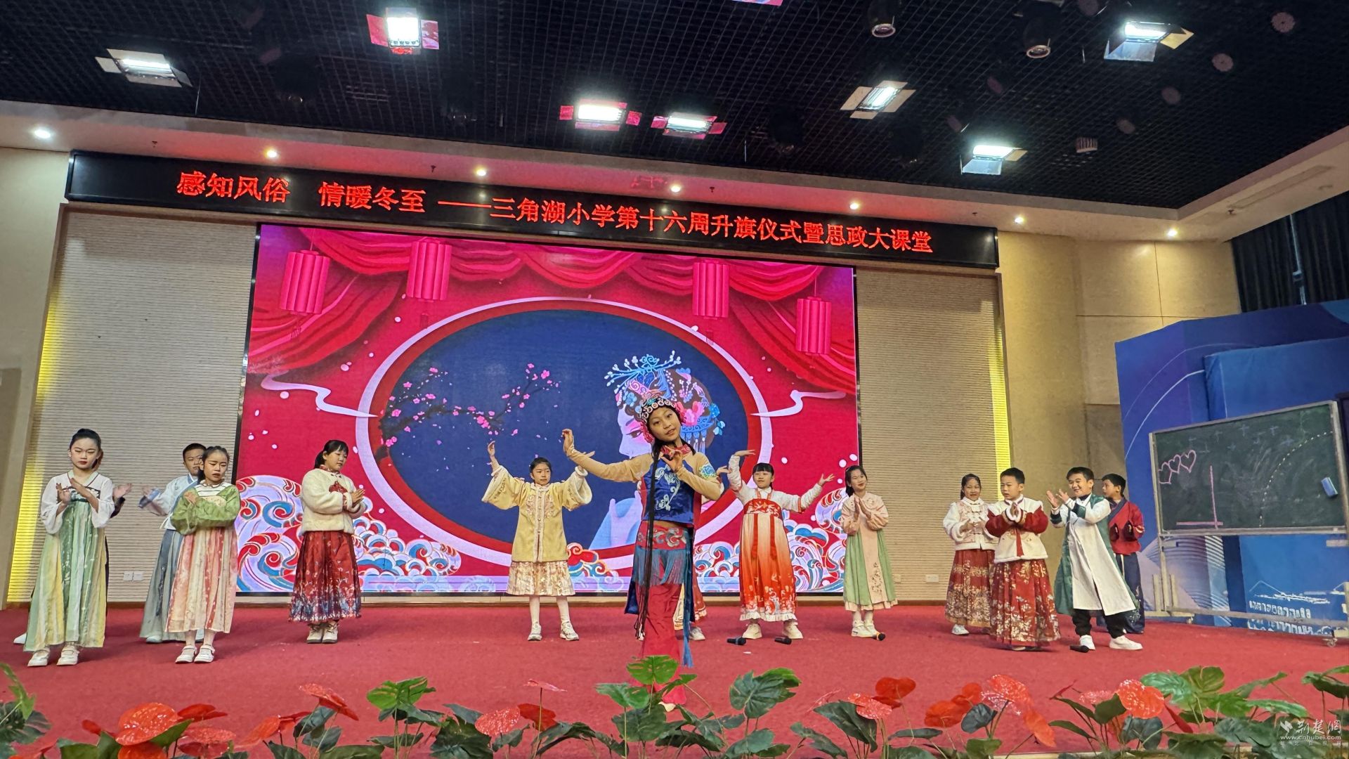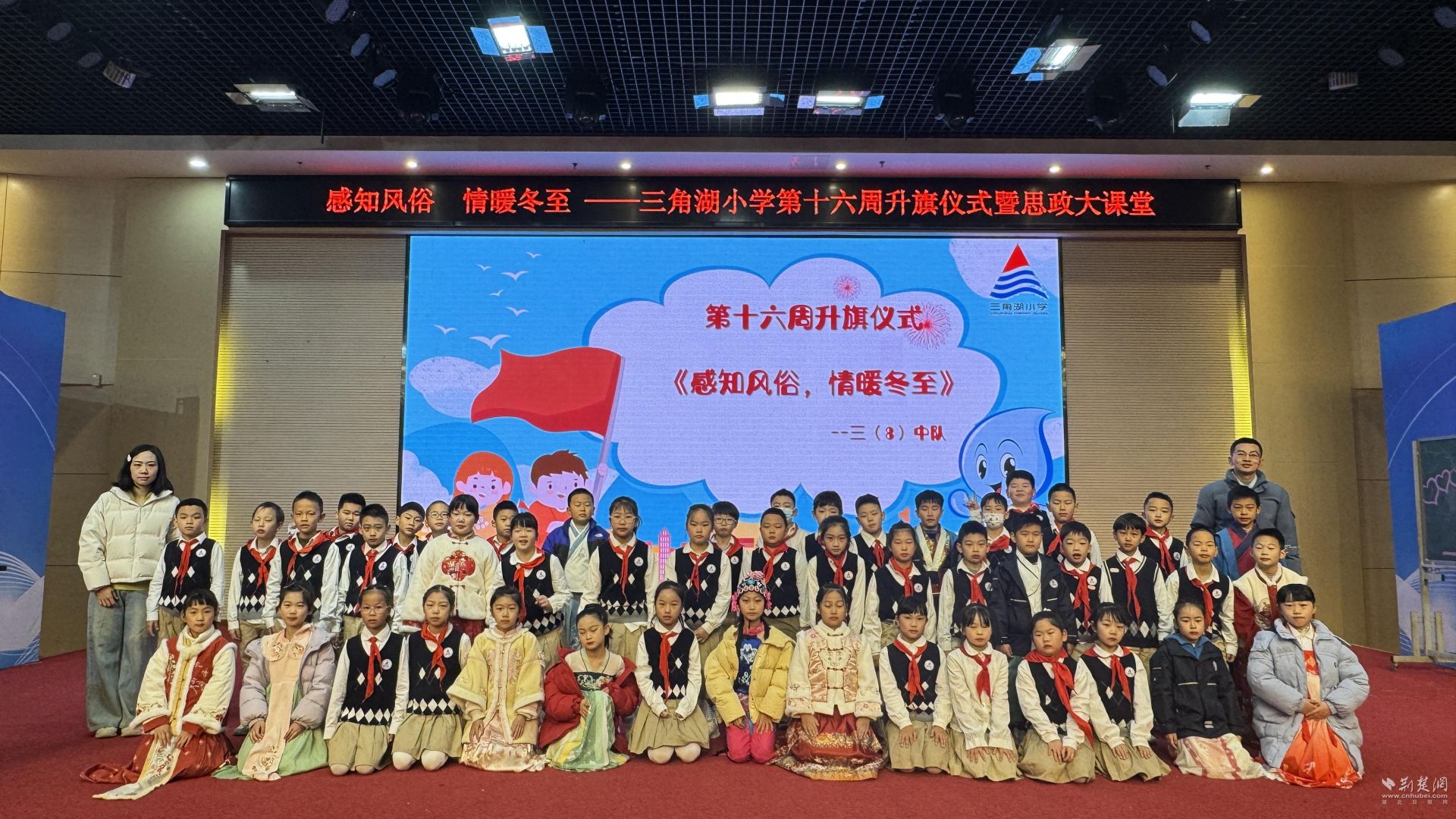 荆楚网(湖北日报网)讯(记者林杉 通讯员周怡飞)12月21日,武汉经济技术开发区三角湖小学博学校区第16周升旗仪式暨思政大课堂活动迎来主题“感知风俗,情暖冬至”。学校将冬至传统民俗展示与廉洁文化教育相结合,为全体师生呈现了一堂生动的思政课。