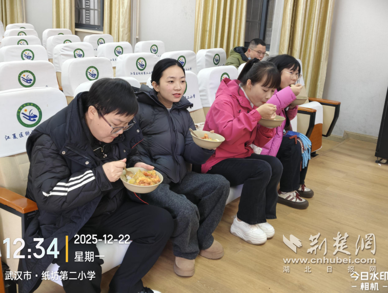 荆楚网(湖北日报网)讯(记者林杉 通讯员陈龙)12月22日,江夏区纸坊第二小学的食堂里,几位家长代表正与孩子们一同用餐。餐后,一位家长评价道:“今天的饭菜热乎又营养,陪孩子一起用餐,亲眼看到食材安全、流程规范,我们特别放心。”该校推行的“家长陪餐”制度,让监督从纸上走进现实。