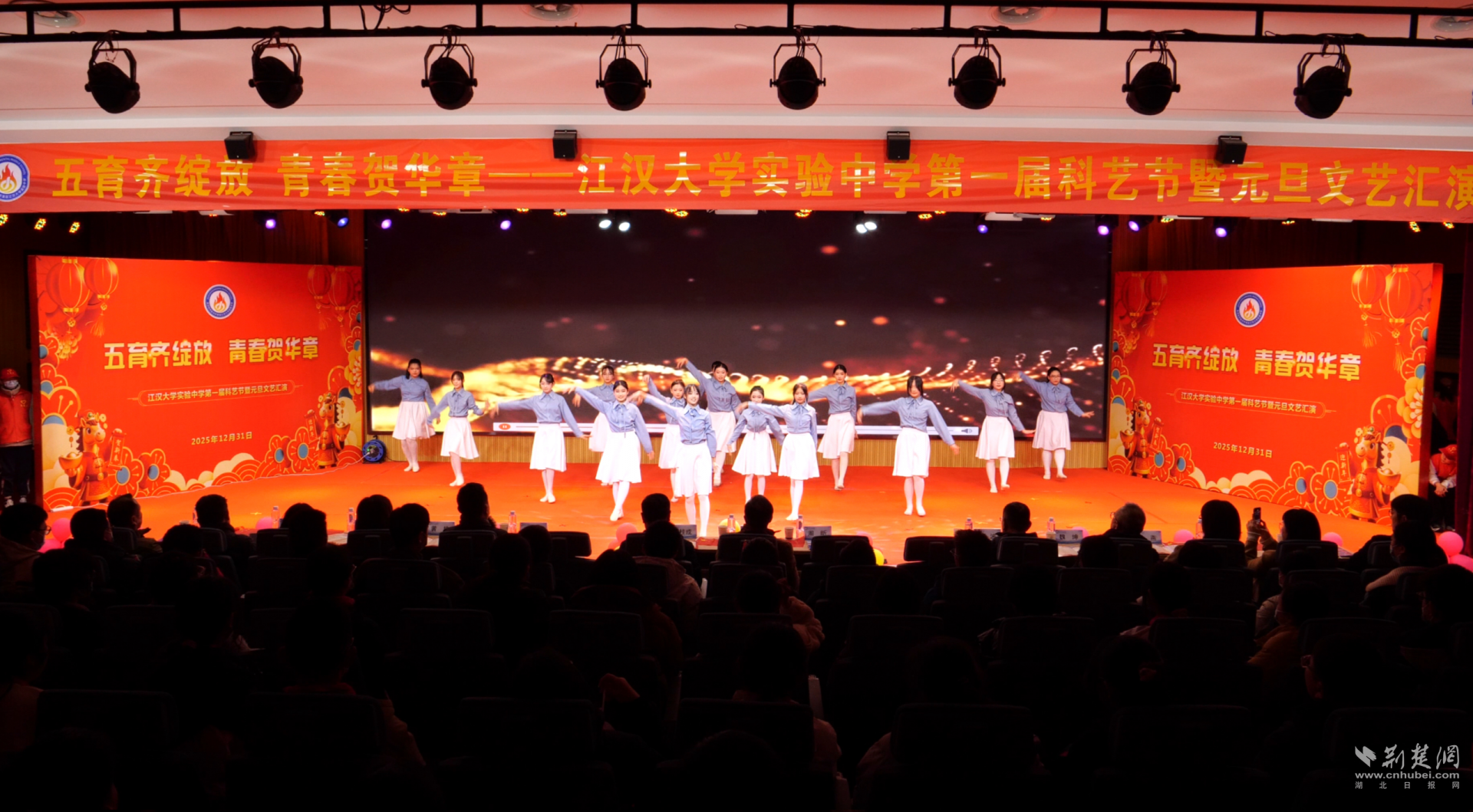 荆楚网(湖北日报网)讯(记者林杉 通讯员郭星瑞)12月31日,江汉大学实验中学举办首届科艺节暨元旦文艺汇演。活动以“五育齐绽放 青春贺华章”为主线,集中呈现学校推进素质教育的阶段成果。