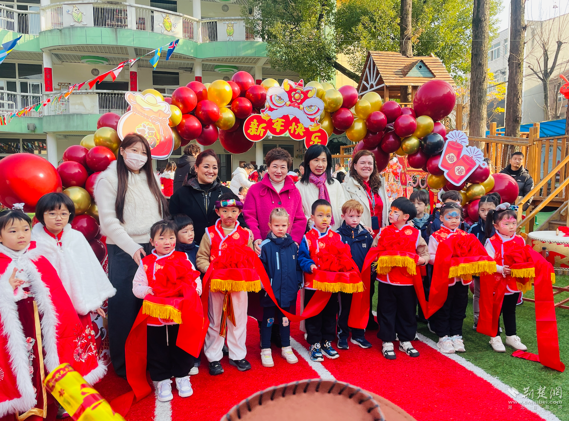 荆楚网(湖北日报网)讯(记者林杉 通讯员程美娟)“外国小朋友的年,是什么样子的?”武汉市汉南区纱帽山幼儿园的一个童真提问,催生了一场完全由孩子策划并主导的“环球年货节”。近日,武汉爱莎学校的十余名中外师生受邀入园,与这里的孩子们共同用舞蹈、游戏和一场真实的跨国集市,寻找答案。
