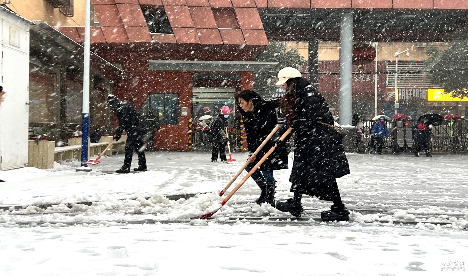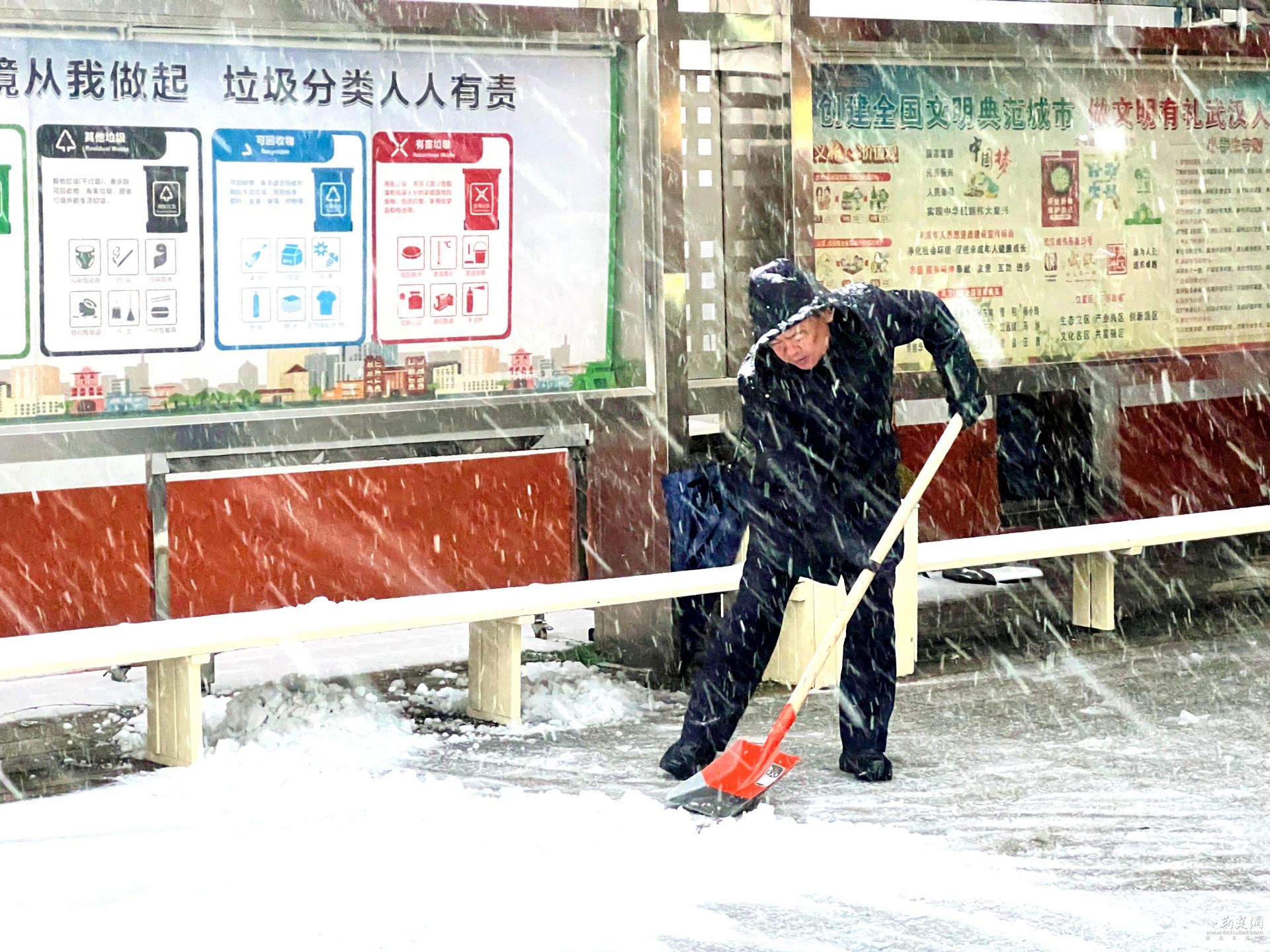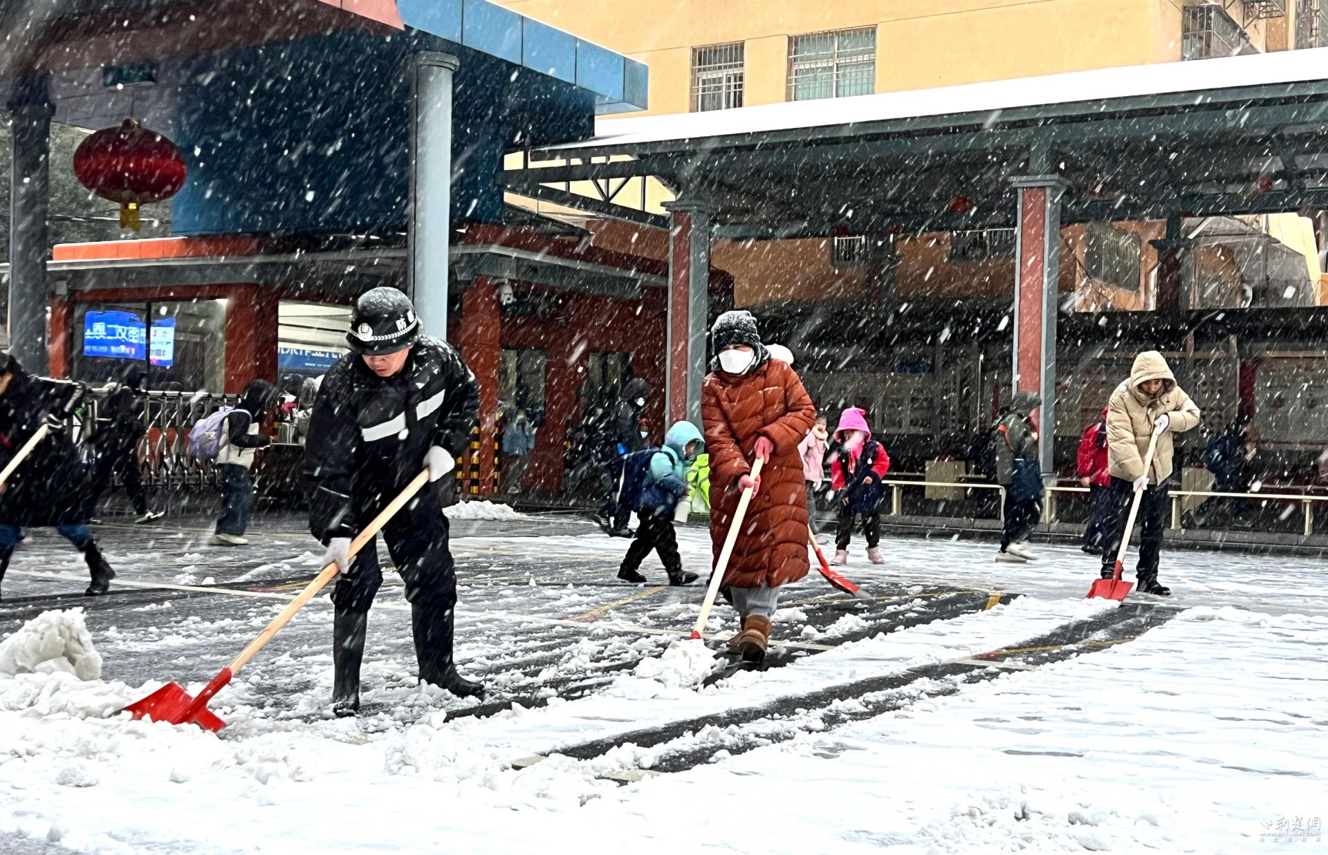 荆楚网(湖北日报网)讯(记者林杉 通讯员何宗兴 张景)1月20日,武汉迎来降雪,城区银装素裹。清晨6时,天还未亮,江夏区东湖路学校校长曾明星已踏雪到校,以雪为令,第一时间牵头组织学校后勤与保安人员,拿起铁锹、扫帚,率先投入校门口的铲雪除冰工作。