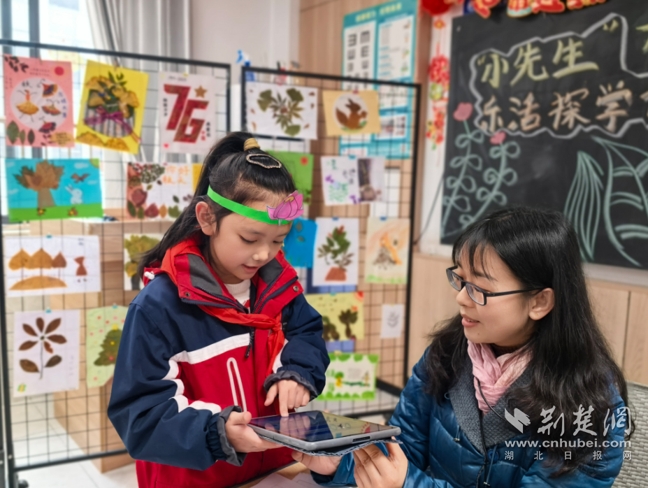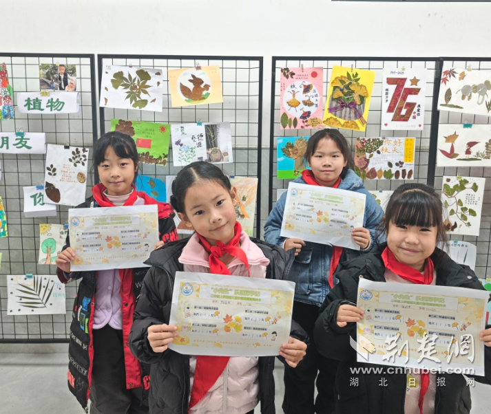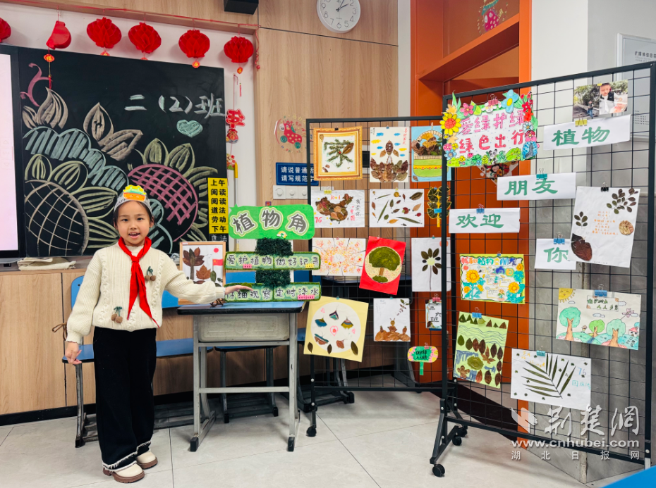 活动突破学科界限,将语文、数学、科学等多学科知识融入真实生活情境,精心设计了“植物探秘园”“AI智慧屋”等一系列寓教于乐的闯关项目。闯关内容均取材于学生日常实践成果,如自编童谣集、植物观察笔记、落叶贴画等。孩子们化身为“小先生”,在实践中互助协作,锻炼表达与解决问题的能力。一年级孩子们手举亲手绘制的闯关卡片,雀跃穿梭于各个关卡。二年级学生头戴创意植物头饰,自信满满地迎接挑战,校园处处洋溢着生机与活力。