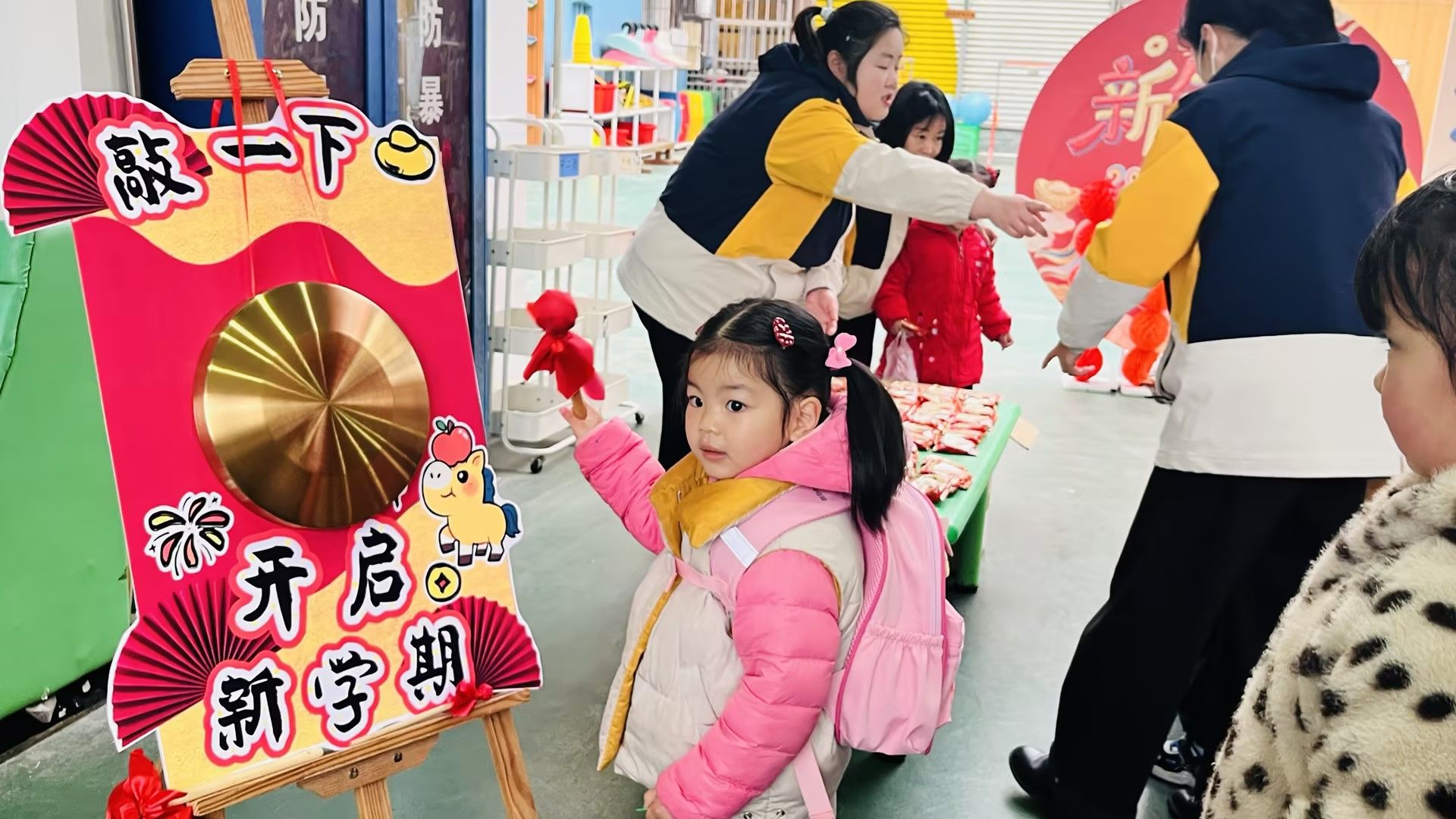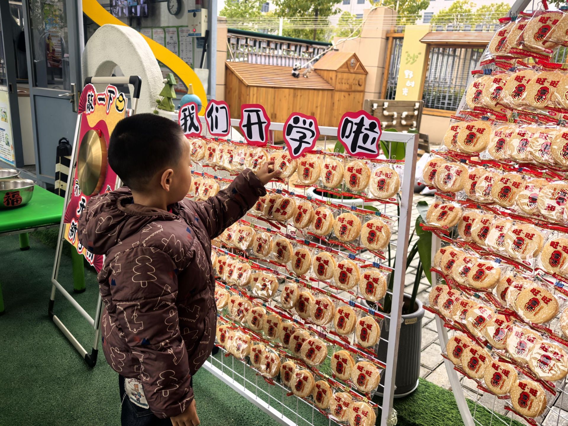 迎着晨光,孩子们有序入园,沉浸式参与趣味满满的开学仪式。“集百福米” 环节,孩子们将自带的各式米粮倒入“百福篮”,汇聚百家福气,这些米粮后续熬成香甜的“百福饭”,让孩子们吃下平安健康的美好祝福;“敲响新锣”时,小萌娃们依次敲锣,清脆锣声唤醒新学期精气神,寓意一鸣惊人;“旺旺打卡”环节,孩子们领取旺旺饼,在主题背景板前定格快乐瞬间,期许新学期身体棒棒、学业旺旺。