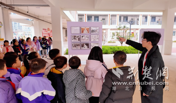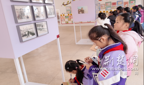 荆楚网(湖北日报网)讯(记者林杉 通讯员童慧 刘麒傲)3月5日上午,江夏区红旗大道学校的艺术展厅内,展出了由湖北美术学院绘画学院与该校学生共同创作的近百幅作品。这场名为“画说雷锋”的主题美术作品联合展览,用绘画、素描、版画等形式,呈现了不同年龄段学生对雷锋精神的理解。