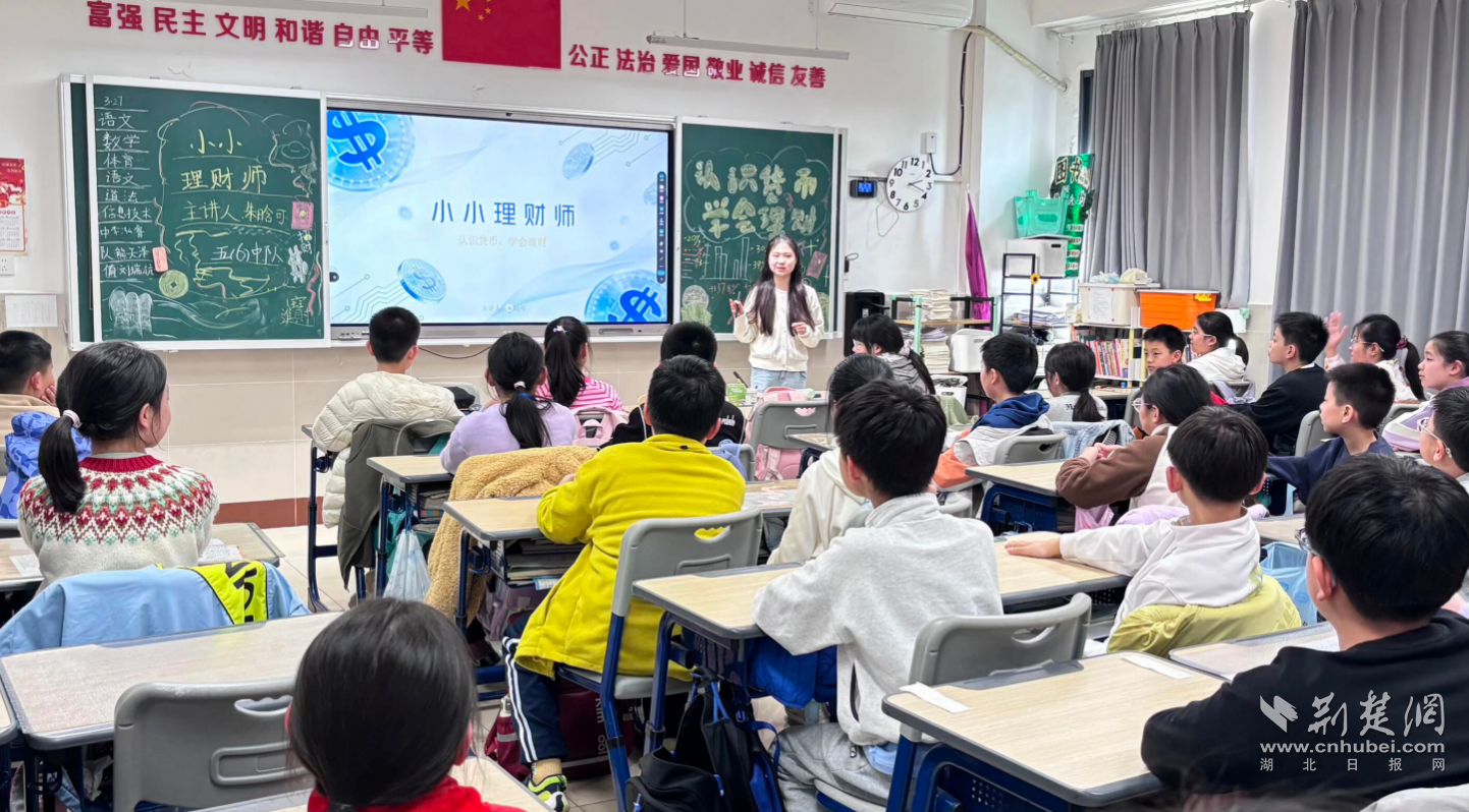荆楚网(湖北日报网)讯(记者林杉 通讯员刘瑾)3月27日下午,武昌水果湖二小五年级(6)班的课堂上,一名大学生站上了讲台。她是湖北经济学院金融系学生朱晗可,也是该班学生朱晗语的姐姐。她以“小小理财师”为主题,为全班同学带来一堂财商启蒙课。