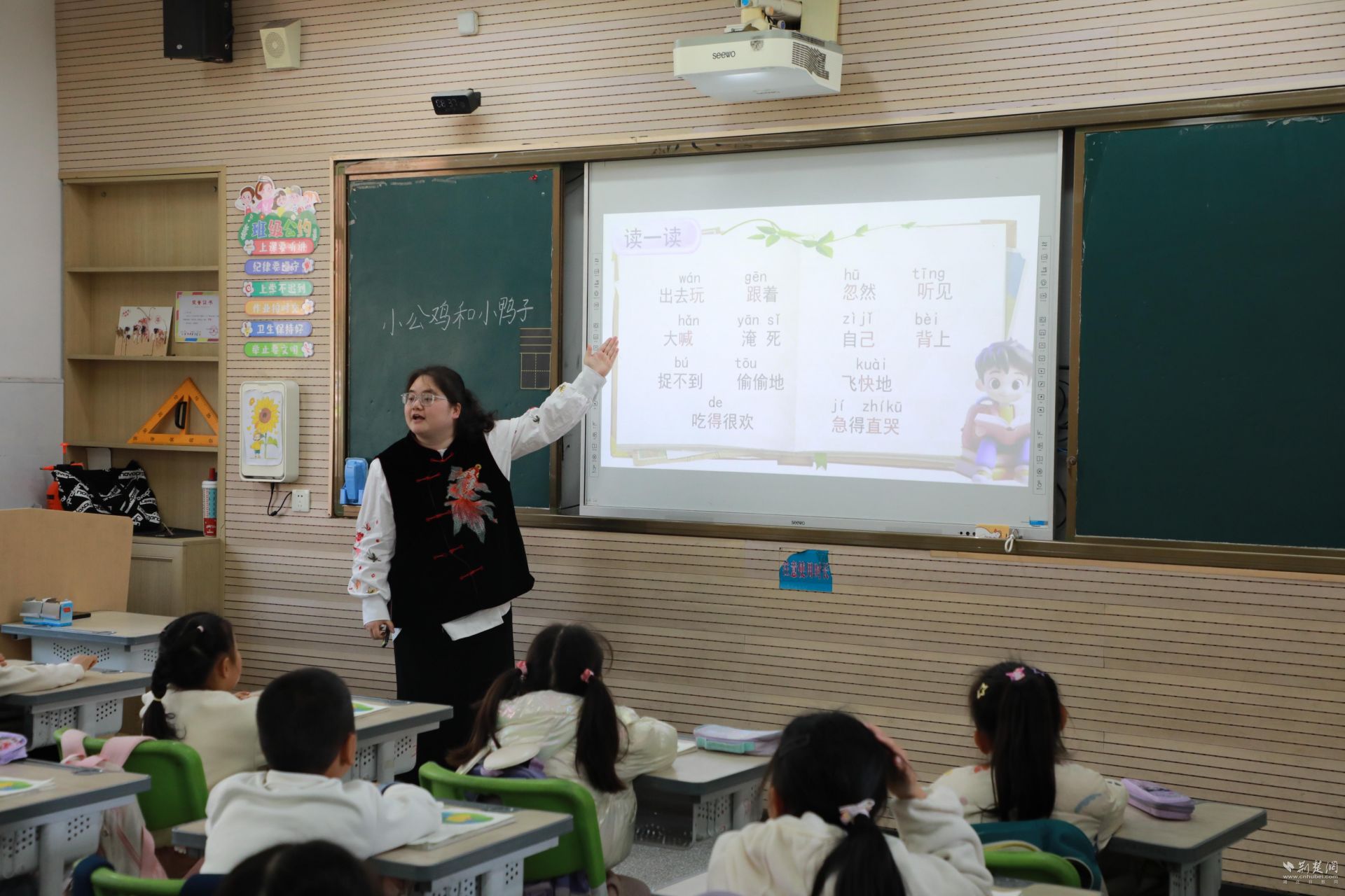 语文课上,马爱玲老师执教《军神》,以主问题引导学生在自主学习和小组讨论中感受人物形象。钱津老师执教习作《他____了》,将习作指导贯穿全过程,学生经历两次习作,实现“看得见的进步和成长”。邓燕老师执教《小公鸡和小鸭子》,以“闯关”为主线,AI小向导贯穿课堂,识字写字环节扎实。