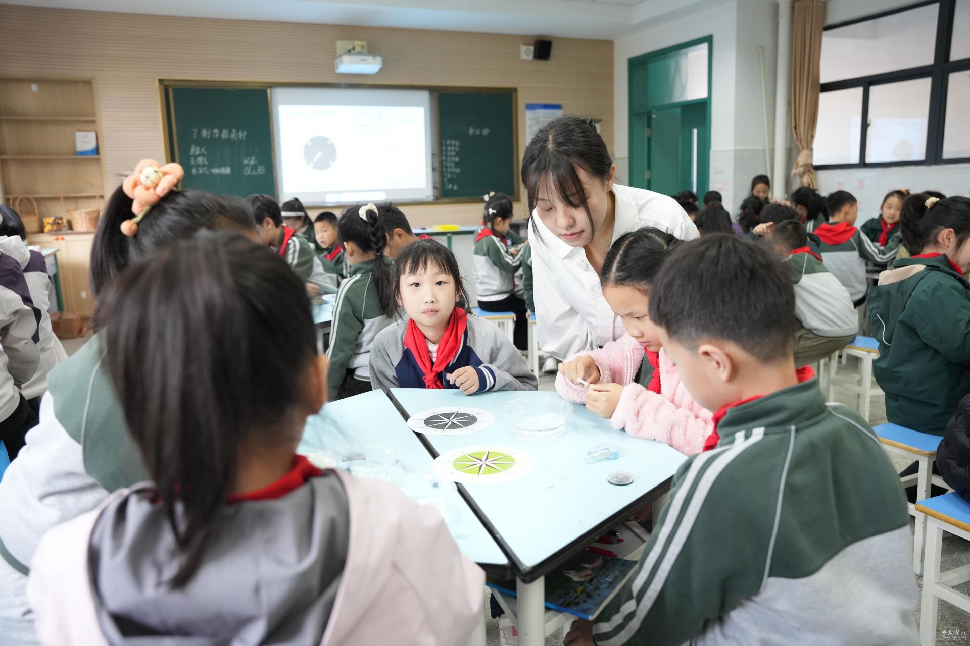 科学课上,段继雯老师执教《制作指南针》,指导学生制作水浮式指南针,小组合作分析方向偏差原因。刘红伟老师执教《相貌各异的我们》,学生观察6种相貌特征,全班数据统计分析,借助AI画像工具生成专属相貌图。