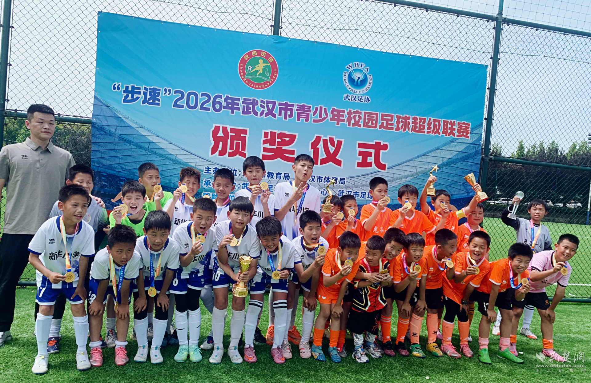 荆楚网(湖北日报网)讯(记者林杉 通讯员赵瑞琪)4月26日,2026年武汉市青少年校园足球超级联赛总决赛落下帷幕。三角湖小学新华校区五年级足球小将奋勇拼搏,历经三轮角逐,在14场高强度赛事中,以13胜1负的战绩,成功击败全市各区多支传统强队,勇夺U11组别总冠军,创下学校足球赛事历史最佳战绩。
