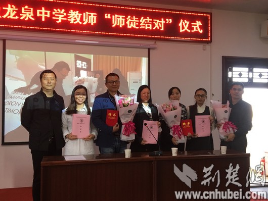 荆楚网消息(通讯员 王勇)10月17日下午,武汉东湖新技术开发区龙泉中学在报告厅庄重而简约地举行了以“激活红色细胞,结伴共同前行”为主题的新学年师徒结对签约活动暨2018-2019学年度教师专业发展“青蓝工程”启动仪式。