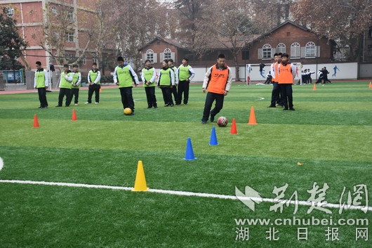 武汉市第二十八中学学生进行踢球训练