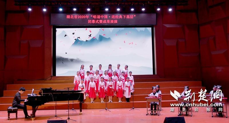 荆楚网客户端—荆楚网消息(记者许文秀 通讯员董智岚、张婉怡 摄影彭匀奕、章韵、李思雨、李姝洁)“慈母手中线,游子身上衣,临行密密缝,意恐迟迟归……”11月20日,湖北省2020年“唱诵中国·送经典下基层”闭幕式暨成果展演在武汉音乐学院解放路校区编钟音乐厅举行。