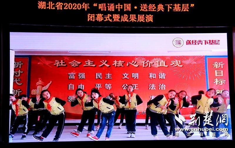 闭幕式通过网络同步直播,蕲春、孝昌、巴东、监利、丹江口、随州、江夏等革命老区、民族山区、贫困地区的7所“结对子”帮扶学校线上观摩。仪式现场播放了基层学校“唱诵中国·送经典下基层”活动精彩片段,7所“结对子”学校及武汉音乐学院附中附小师生们进行了线上和现场成果展演、交流。