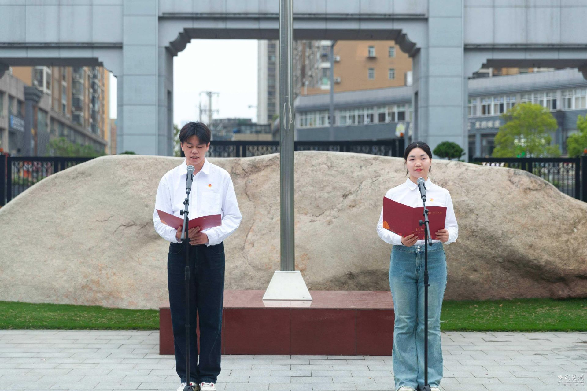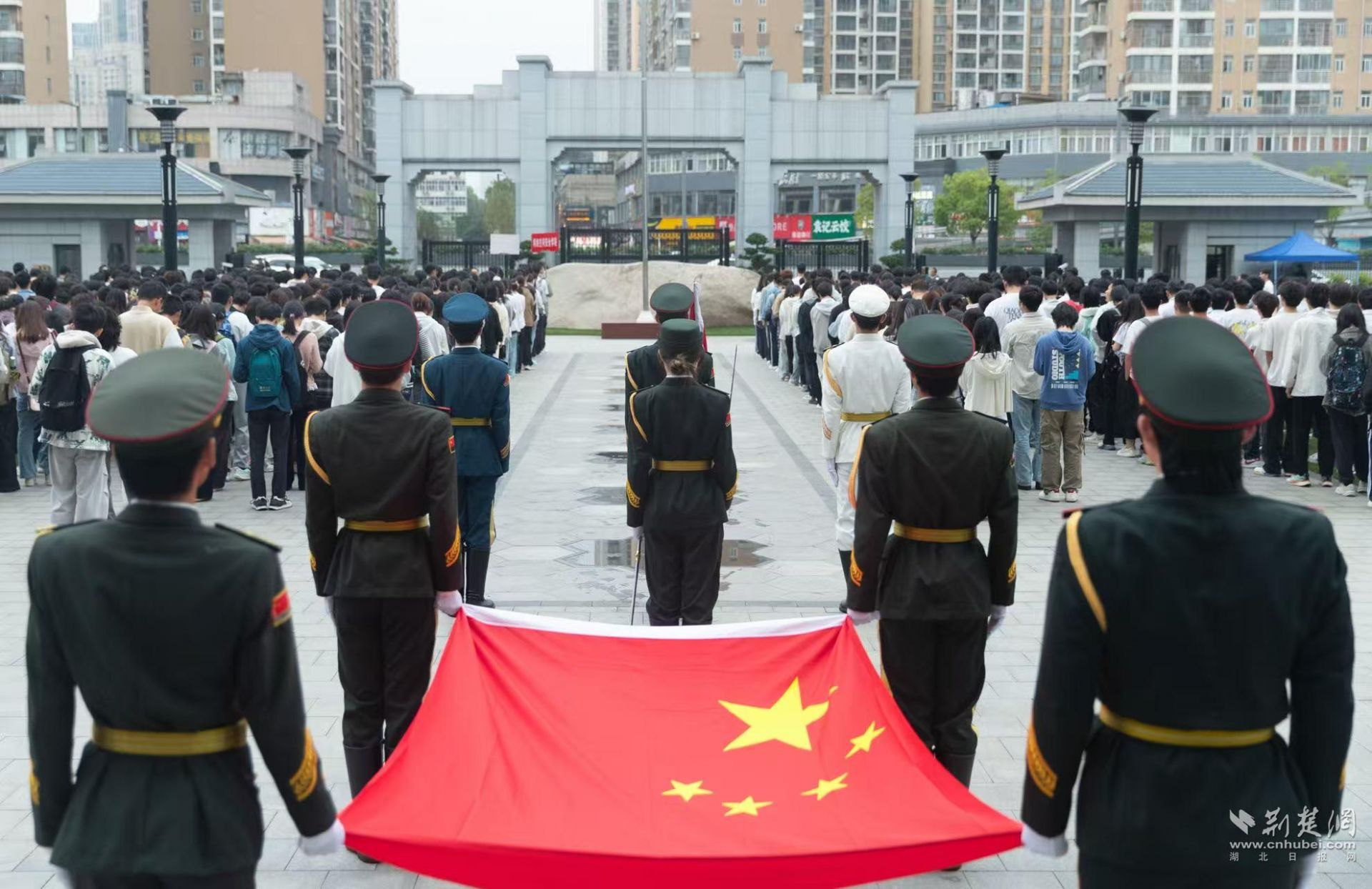 荆楚网(湖北日报网)讯(记者林杉 通讯员周锦杰 郭雨宸)“严守国家秘密,守护国家安全!”4月15日,铿锵有力的誓言在湖北大学思睿广场响起。为引导师生深刻领会总体国家安全观,自觉筑牢国家安全思想防线,湖北大学举行升国旗仪式暨“挺膺担当时代新人 共筑国家安全防线”国旗下思政课。