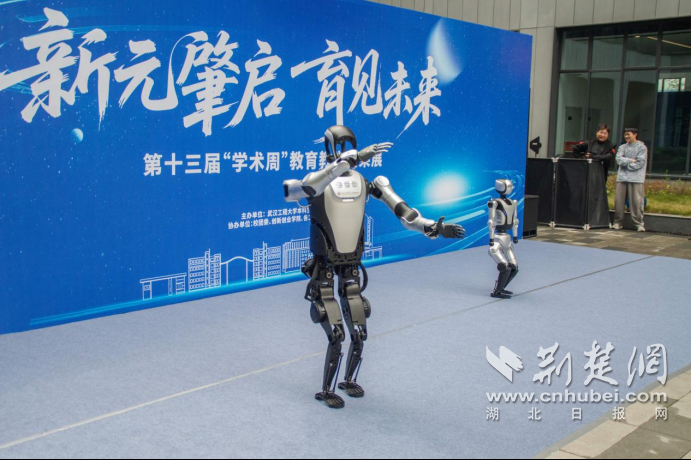 荆楚网(湖北日报网)讯(记者林杉 通讯员石倩 黄晶晶 王海澎 姚一琳)4月15日,在武汉工程大学流芳校区,机器人“夸父”抬起手臂,缓缓推出一个太极起势;它身边,“鲁班”同步转动身躯。围观的学生纷纷举起手机拍照。这是该校第十三届“学术周”教育教学成果展,展现了武汉工程大学具身智能跨学科教学平台的建设新成效。
