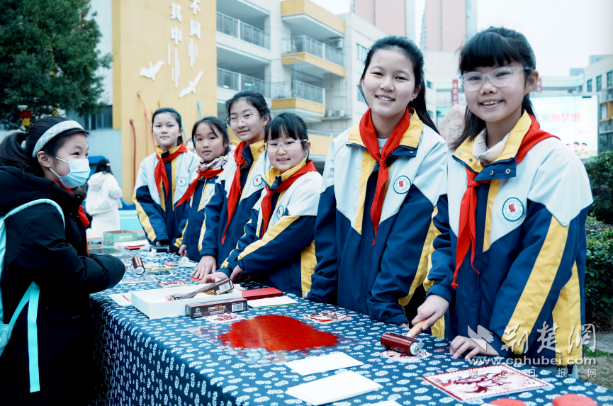一旁,“快乐小马驹开学啦”主题打卡点前欢声笑语,同学们利用融合了校徽、和乐文化、马年祥云奔马纹样的创意道具,纷纷拍照,定格专属的马年开学瞬间。非遗体验区内,美术组老师指导同学们动手制作马年生肖主题的版画藏书票,将传统文化魅力与动手创造的乐趣巧妙结合,开启了新学期的第一课“美育”实践。