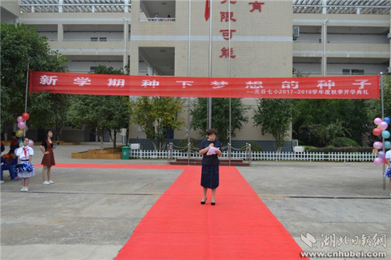 湖北日报网消息(通讯员 何霞玲)2017年9月1日上午,武汉市光谷第七小学全体师生在操场举行隆重的开学典礼。