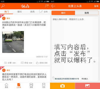 网友追风野丫头说,爆料操作很简单,一键点击就可以填写发布内容,很容易上手。