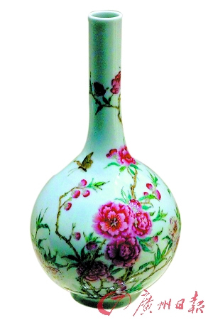 被砸的“乾隆款粉彩小胆瓶”(来源:广州日报)