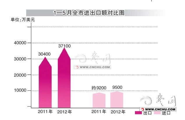据市统计局统计,元至5月,全市出口3.71亿美元,进口0.95亿美元,分别增长22%和2.9%.3月至5月,出口增幅分别为11.8%、16.8%和22%,出口增长呈现逐月加快态势。