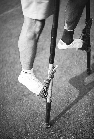 “每天下了课,我就会到塑胶场地训练,四年来,‘竹马’用断了十几副。”小孙说,四年前,刚刚开始练习时,在“竹马”上站都站不住,不知道摔了多少次跤,每天身上青一块紫一块的。
