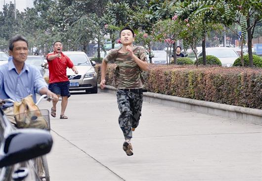 昨日一早,因买菜发生纠纷,青山区园林路街头引发了一场全武行。事发时,记者采访经过此处,只见一群男子在街头追逐4名身穿迷彩服的年轻男子,其中3名男子“逃脱”,一名男子躲入绿景花园被“抓”。
