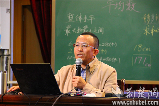 11月13日上午,武汉市光谷第一小学的报告厅迎来了一场教学盛会。全国著名数学特级教师、江苏省车坊实验小学校长徐斌老师带队来到光谷一小讲学。徐老师首先执教了一节苏教版四年级数学课《平均数》。徐老师从游戏入手,在学生一次次当小裁判裁决男女生比赛胜负的过程中,学生逐步弄清了什么是平均数,体会到了平均数产生的必要性。在分笔、分彩带、当经理的过程中,学生自然地体会到“移多补少”、“求和平分”这两种方法应如何应用并灵活选择。篮球队平均身高等问题的解决让学生对平均数的理解走向纵深。一节课下来,孩子们在解决一个个生活问题中充分体会到数学来源于生活又服务于生活。更难能可贵的是,还使谦让的种子播撒在孩子的心中。