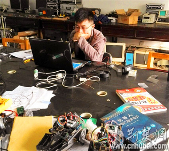 在每次大赛前一个月,学生就开始设想并大胆尝试多种项目。那段日子里,为了赶时间、赶进度,他们起早摸黑,整天泡在实验室,每天都要进行上百次的编程、调试,在实验室一呆就是十几个小时,累了就在桌子上趴一会。遇到难题时,团队成员轮番在图书馆、网络上查阅资料,四处奔波求教,从不放过任何一个细节。每次回到宿舍已是全身疲软,视力也严重下降。夜晚,别人都已酣然入睡,他们仍在分析编程和调试中出现的问题,根据理论知识研究实际情况,仔细琢磨,争取第二天能有所改进、有所突破,就这样,他们日复一日,坚持着雷打不动的作息时间。