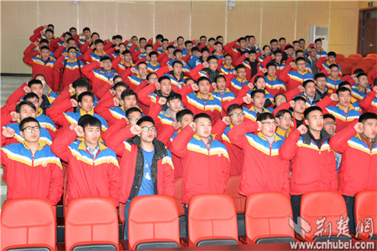 会中,还隆重举行了宣誓活动,由学生代表带领全体体育生共同宣誓,同学们的铿锵誓言震憾人心,高昂的口号响彻全场,把大会的气氛推向了最高潮。