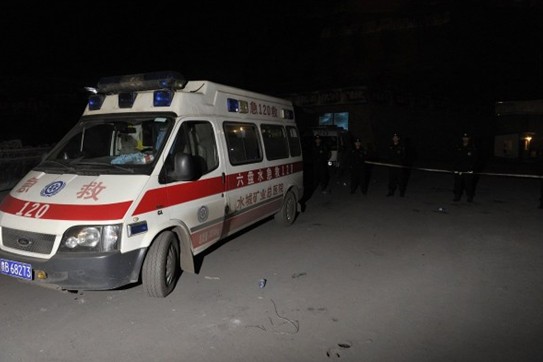 3月13日,救护车在事故矿井井口待命。新华社记者 欧东衢 摄