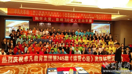荆楚网消息(记者 程义莲)12月19日上午,为期三天的卓凡第245期总裁班正式开课了,来自湖北省各个市百余名企业家在武汉市玛雅酒店齐聚一堂,共同学习经营企业的先进理念。