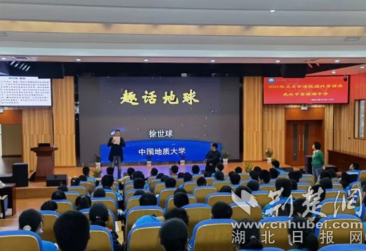 荆楚网(湖北日报网)讯(记者何鹏 通讯员王林楠、林嘉)10月13日下午,2021院士专家进校园科普讲座——“趣话地球”在金银湖中学成功举行。活动特邀中国地质大学教授徐世球为同学们带来讲座,现场趣味横生,热烈生动。