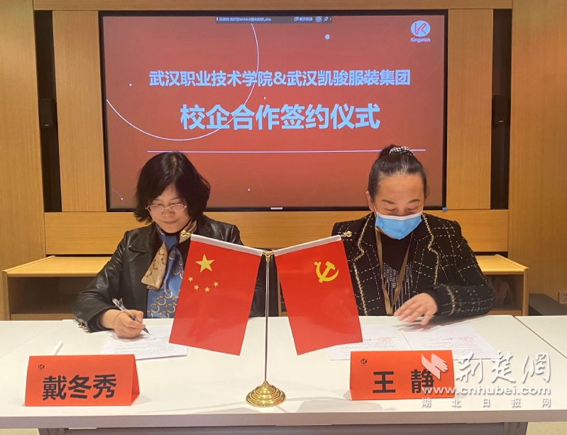 武汉市异国生长教育科技有限责任公司、武汉凯骏服装集团当场与武职签订校企合作协议。