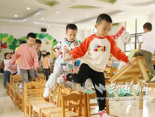 为了让幼儿拥有健康的体魄,龙湖幼儿园组织幼儿体能大循环活动,根据天气情况,适时开展室内或户外的体能大循环。桌子、椅子、小桶、圈圈、跳绳摇身一变,活动室变成了孩子们的游戏场。幼儿们自由奔跑、跳跃、钻爬,在运动中收获自信和勇敢。