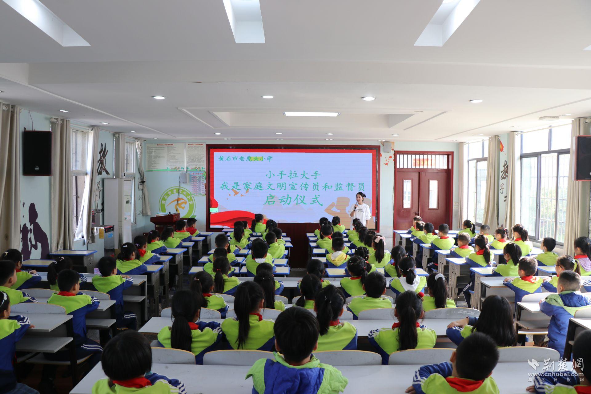 荆楚网(湖北日报网)讯(记者唐天琪)文明是一阵清风,爽朗了人们的心情;文明是一盏灯,照亮了前程的光明;文明是一场雨,滋润了干涸的心灵。为积极响应上级部门“创建黄石文明城市”的号召,11月9日上午,黄石市老虎头小学举行了“小手拉大手,我是家庭文明宣传员和监督员”启动仪式,三年级学生代表参与此次活动。
