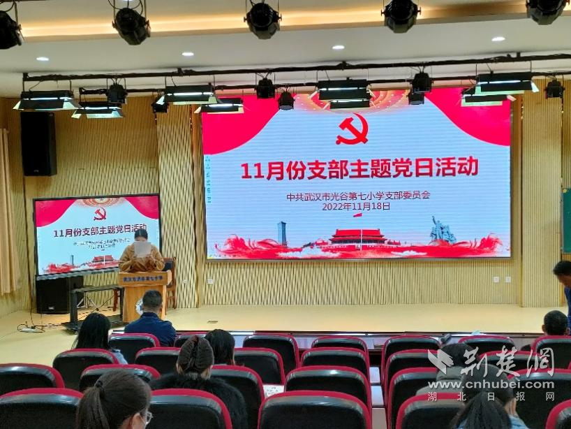荆楚网(湖北日报网)讯(记者唐天琪 通讯员杨敏芬)近日,武汉市光谷第七小学党支部在学校报告厅开展了支部主题党日活动。本次活动的主题是“深入推进党员家校协同活动”,全体在职党员教师参与了本次活动。